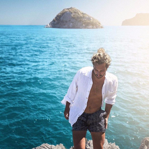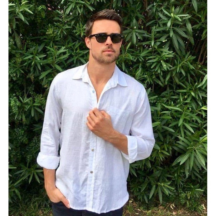 Crandokta Linen Long Sleeved Shirt - White & Navy