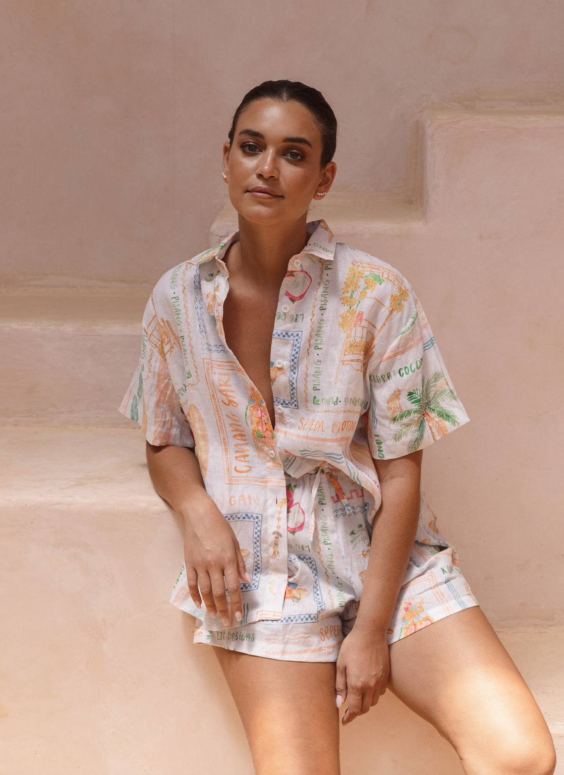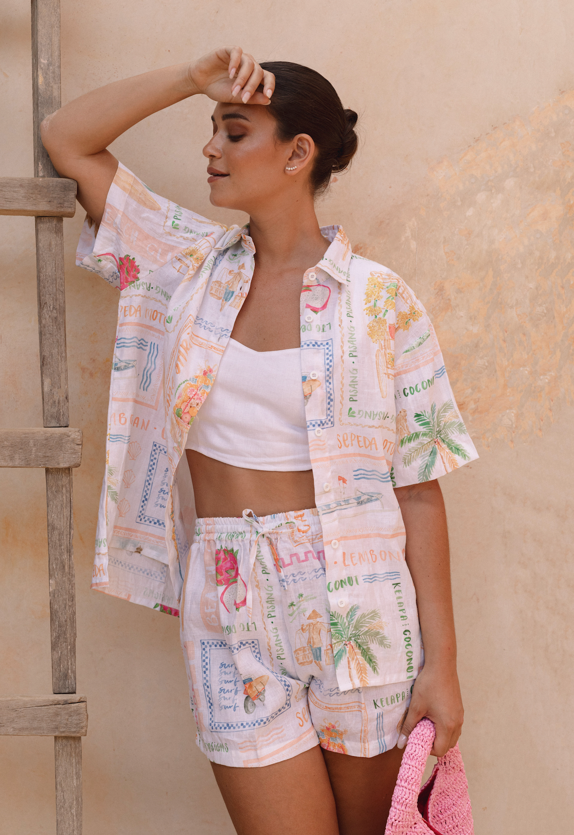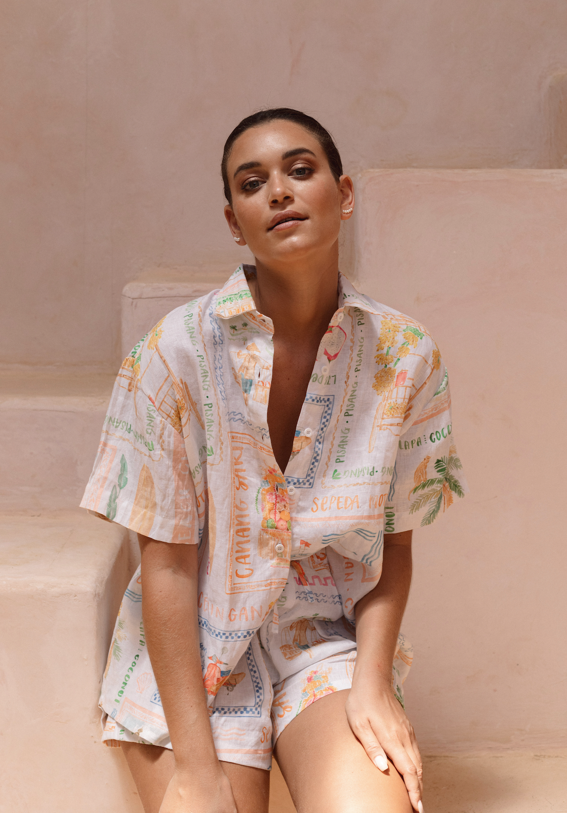 This print is inspired by island living in Indonesia's tropical paradise, Bali. Be immersed in the pastel watercolour scenes that are iconic and unique to this daydreamers Nirvana.