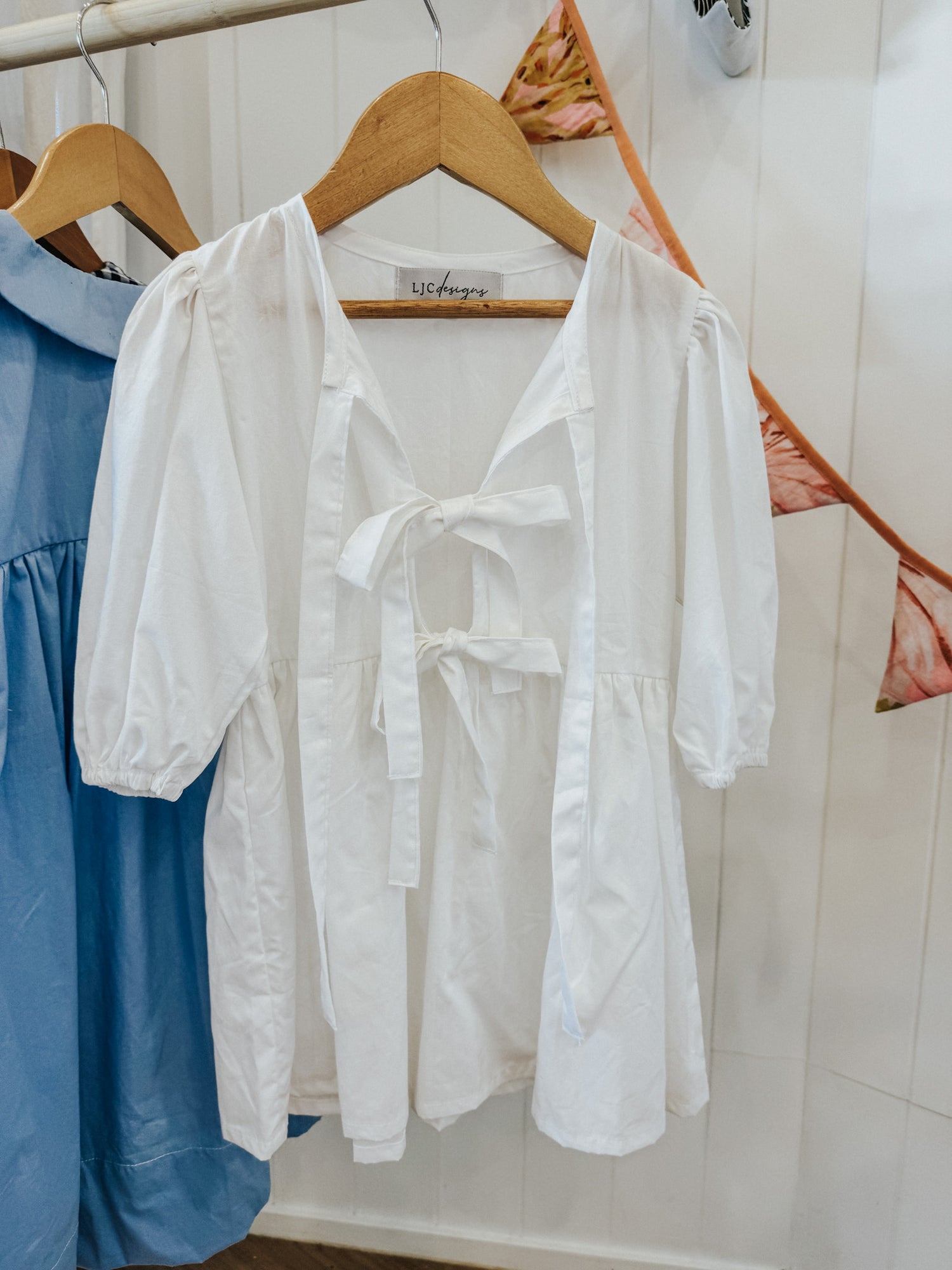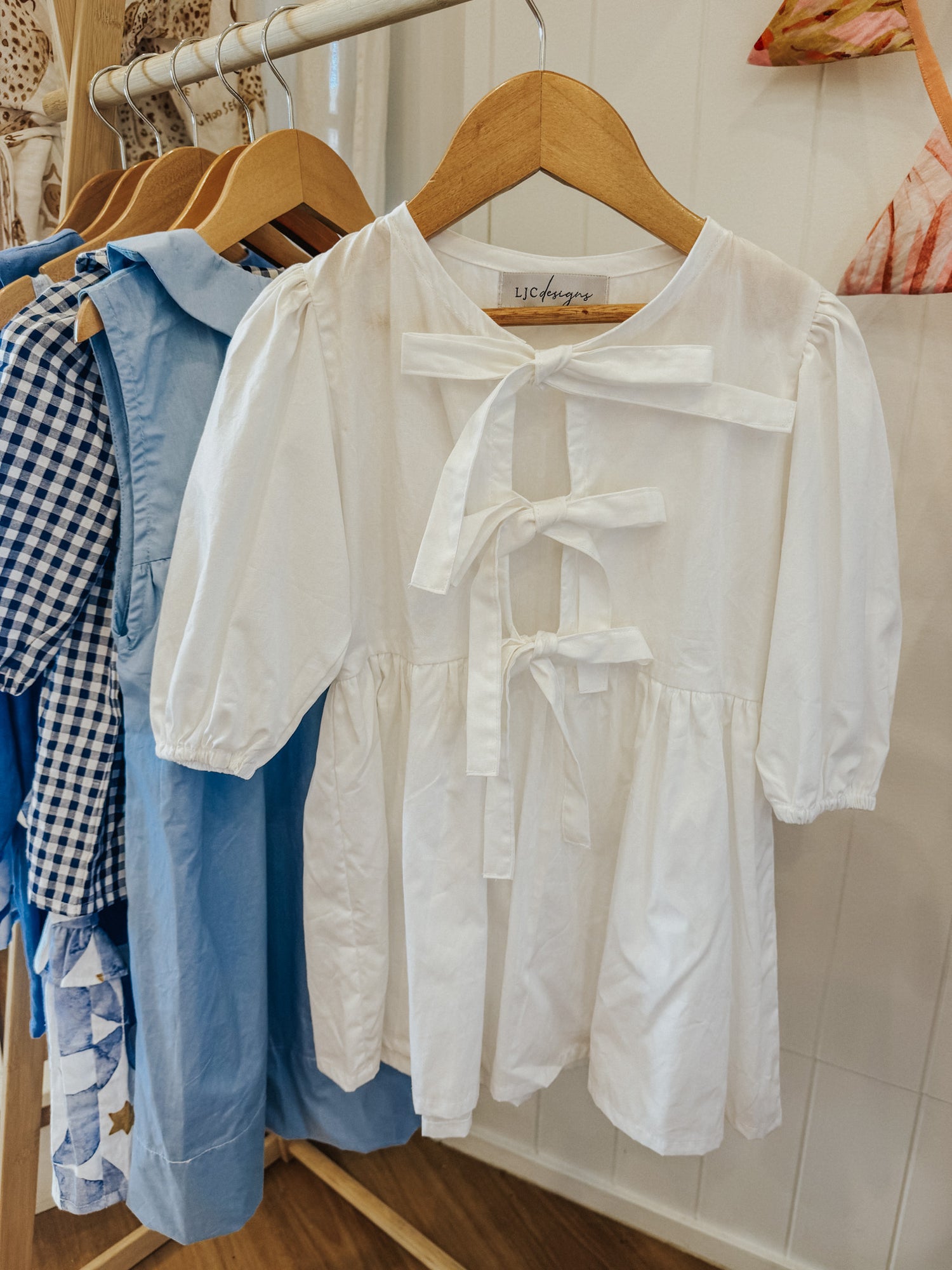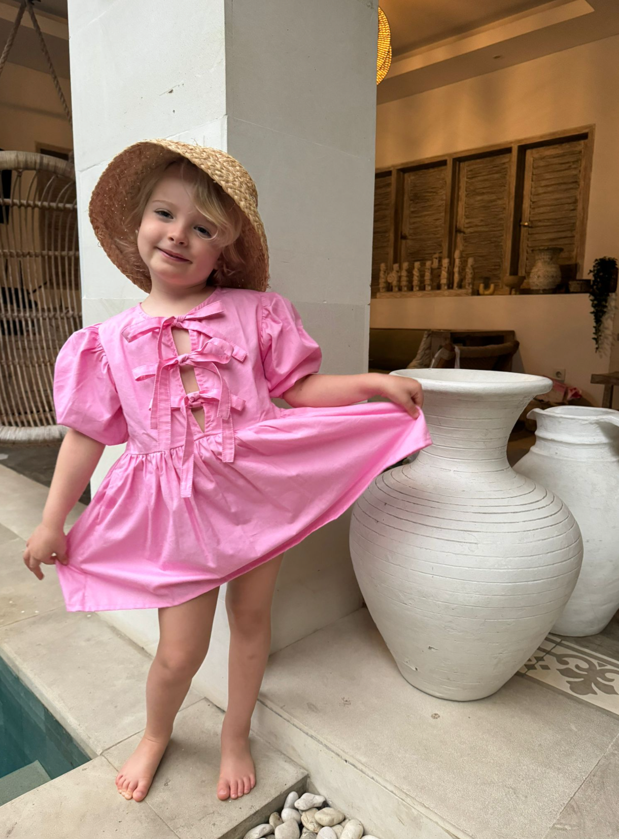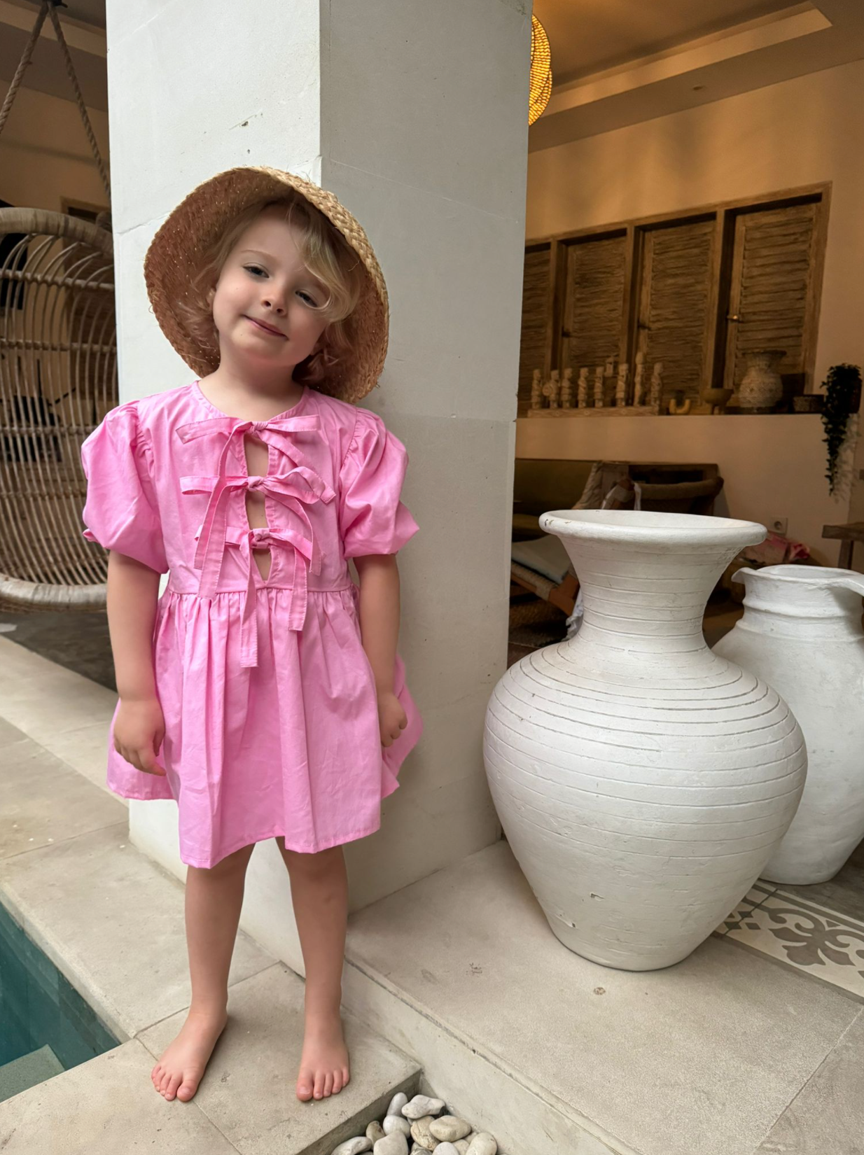 The Sylvie Tie dress. Made from 100% cotton poplin. This dress is a mini version of our Sophie dress, perfect for your mini.