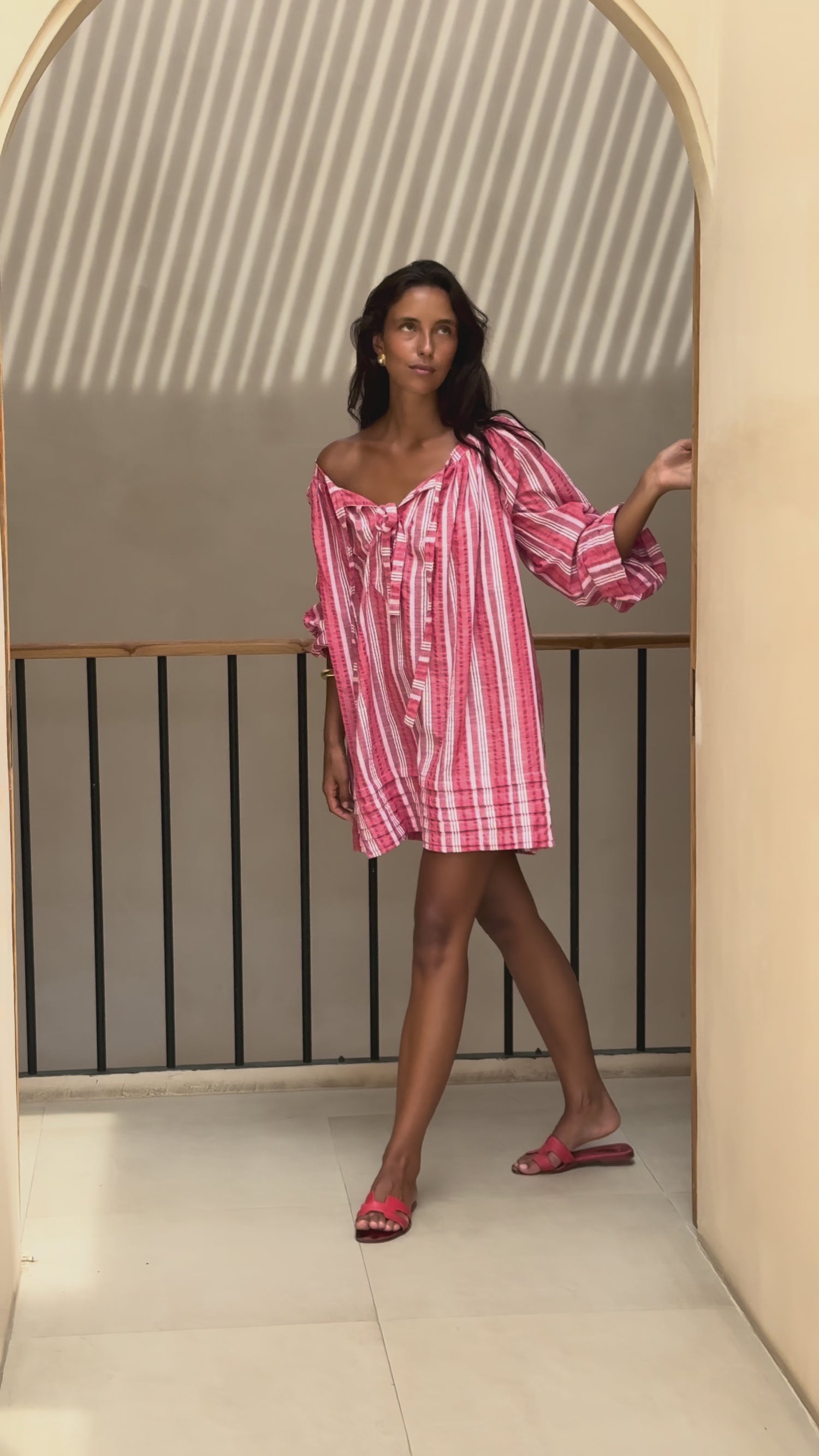 The Sammie dress is crafted from airy cotton, subtly gathered at the neckline to create a billowy silhouette and detailed with pin tuck cuff on a flouncy balloon sleeve and hemline.